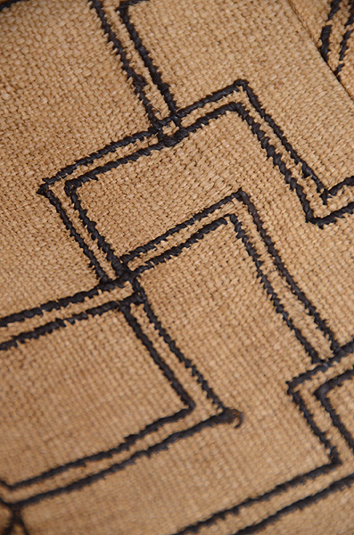 ラフィアの布に穴を開け、ステッチを施して幾何学模様にした大きな布を、アフリカクバの人たちは腰布として使っていました。