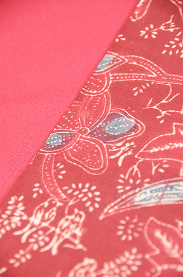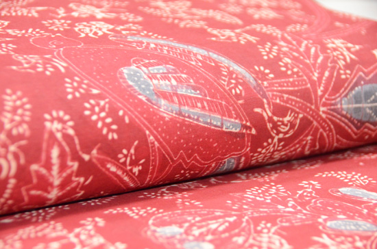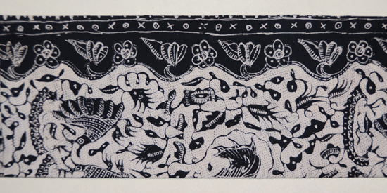 どちらかというと、少し重くて暗い感じを受けるバティックですが、これは明るくて楽しい図柄です。