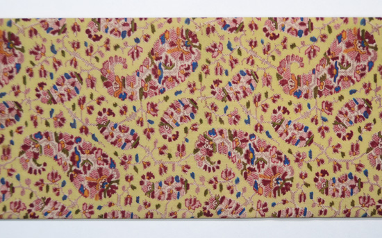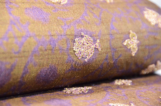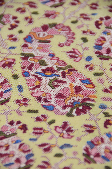 イギリスから斬新なデザインが入る前、大きなペーズリーもザリワークも、時代の流れからそろそろ置いていかれる頃の、貴重な織物です。