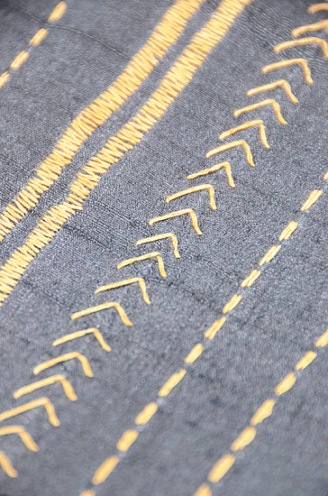 色々な手法でステッチされたモダンなデザイン、手縫いと信じられるまでに、時間がかかりました。
