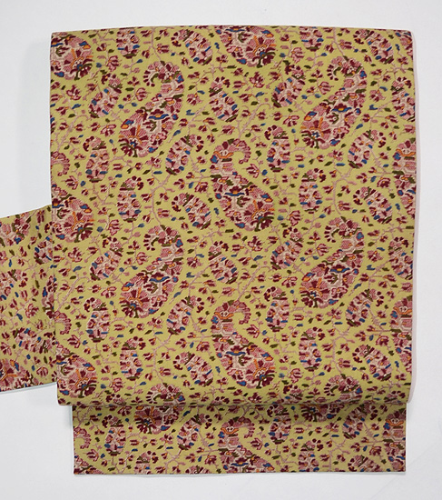 銅板のヨーロッパ更紗の写し絵をはめ込んで帯にしました。