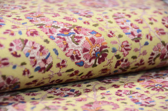 イギリス産のジャガード織りのカシミールですが、帯使用にふさわしい質感になっています。