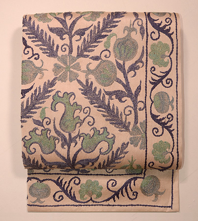おなじみになりました刺し子の帯です。 今回のご紹介は1枚だけですが、店内では色々ご覧いただけます。