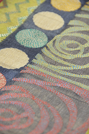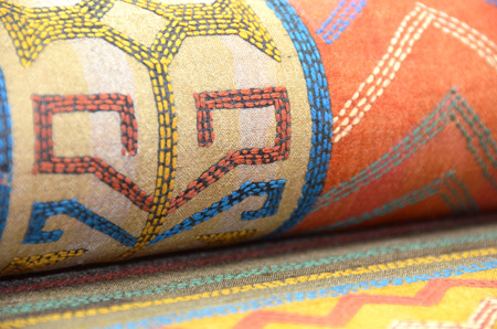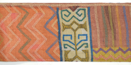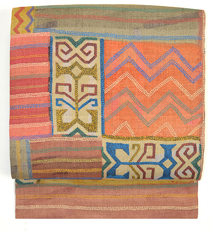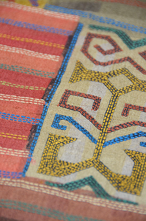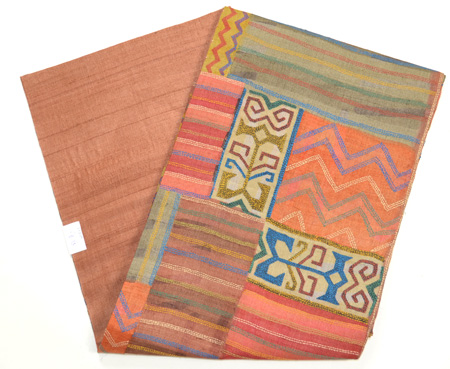インドの自然を思わせる薄い赤茶やオレンジの地に、多色で刺し子が施してあります。