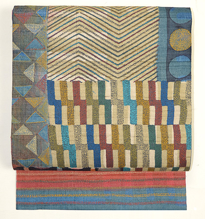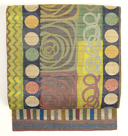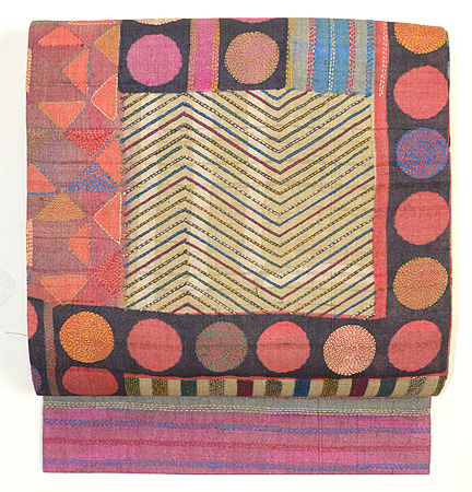 気取らない軽やかさを持ち合わせた、時間をかけて一刺し一刺し作られた、暖かいカンタワークの名古屋帯です。