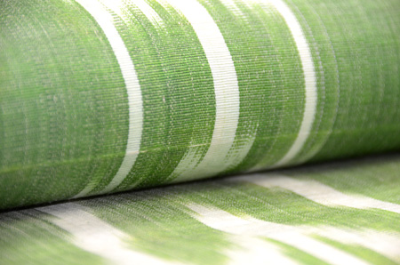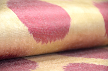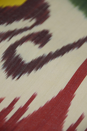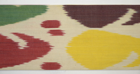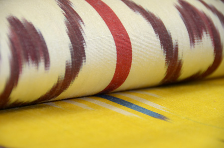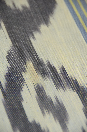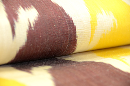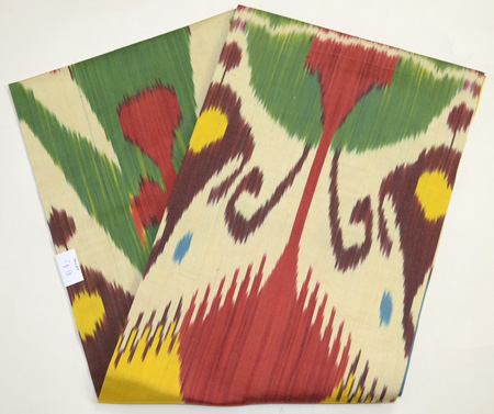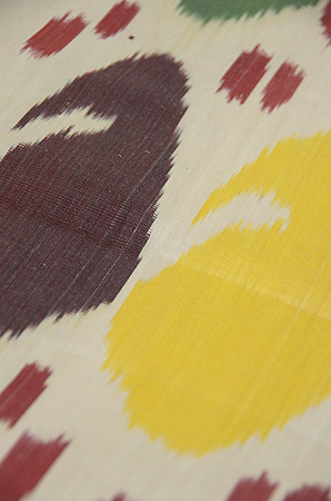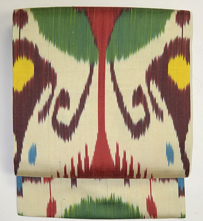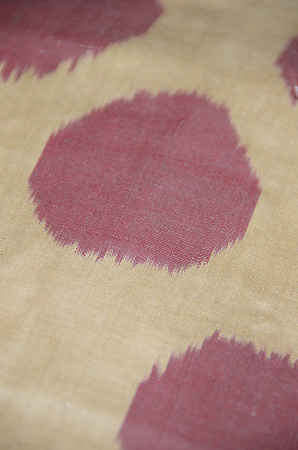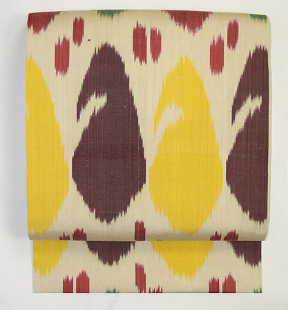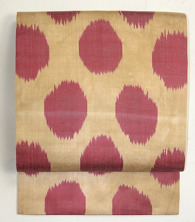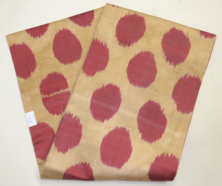 それら3点も緯糸が棉で経糸が絹で織られた味のある布ですが、このアドラスは艶やかでしなやかな、時代の良さを感じさせる糸で織られています。