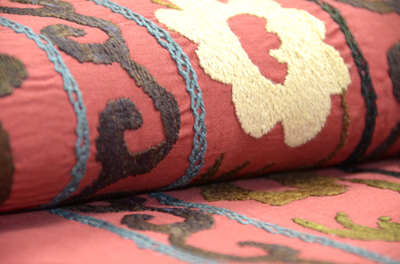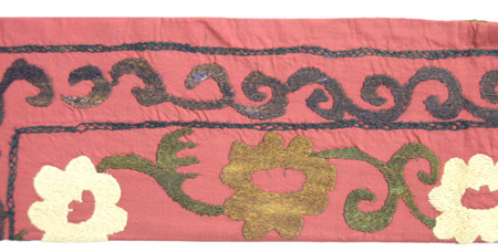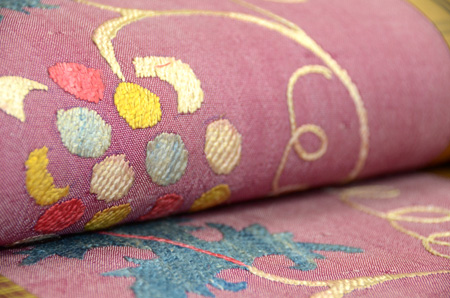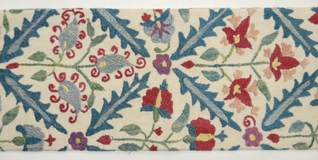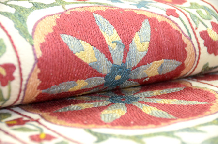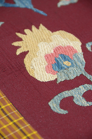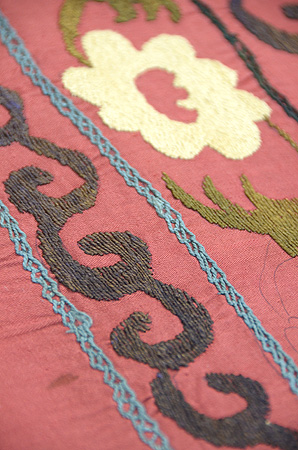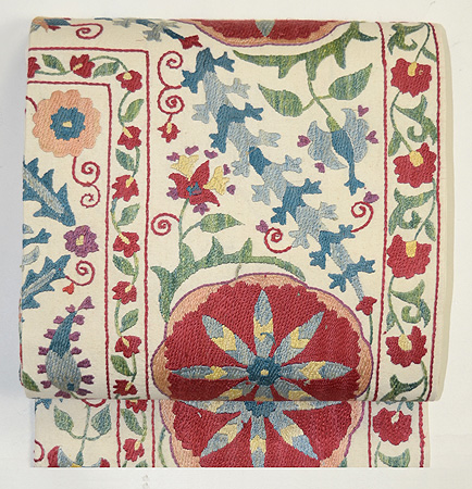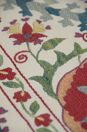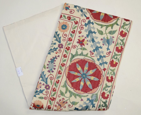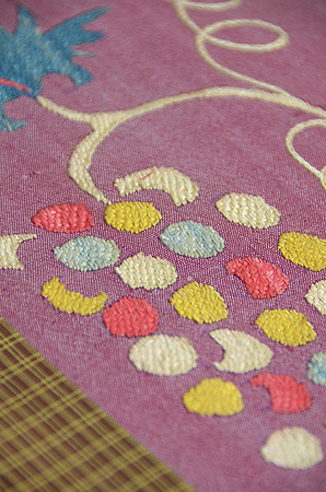 草木染め多色の糸の配色とモチーフの細やかさがとても良く、手のこんだスザニです。