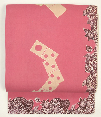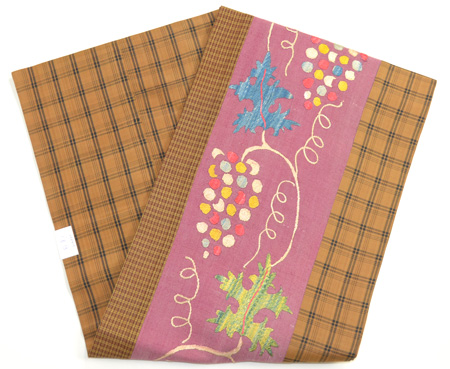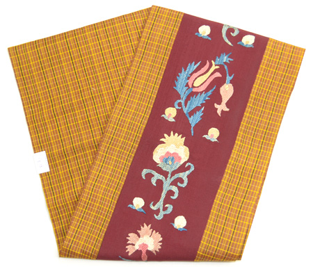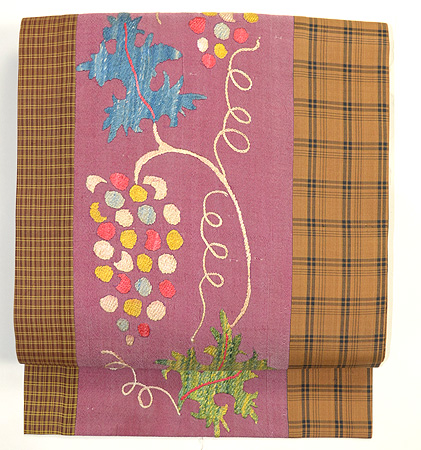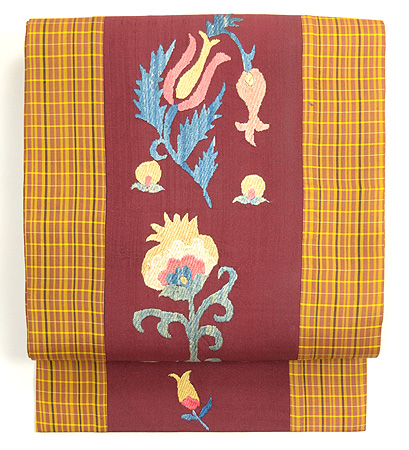 可愛らしくも華やかなモチーフのスザニを日本の格子とコラボして出来上がった、灯屋2新作帯です。