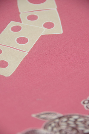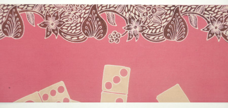 ピンク地の珍しいこのバティックは、ジャワ島北部のチレボンで作られたもの。