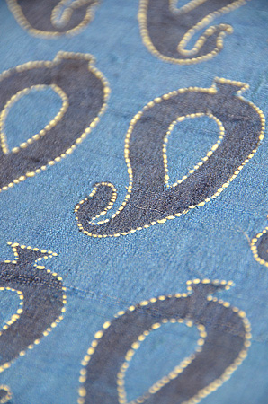 布地に色分けの染色をしたうえで、それぞれの色糸で丁寧な刺繍が施してあります。