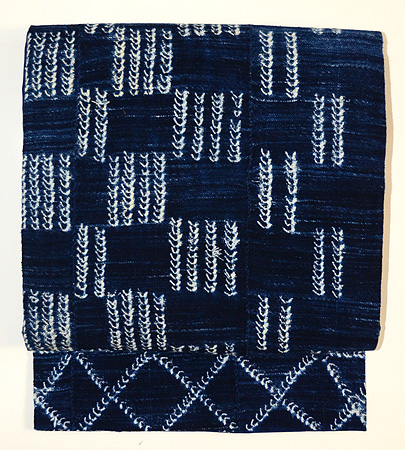 帯地には、ローズピンク(紫みを帯びたピンク)で一面にカンタワーク(刺子)がされています。
