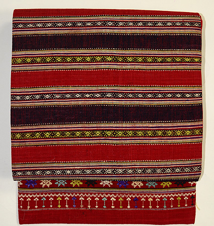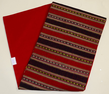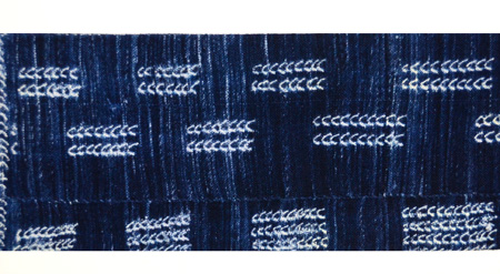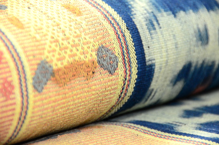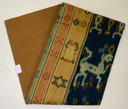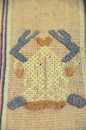 動物のような絣に、六芒星なども織りだされ、どこか神秘性も感じる布です。
