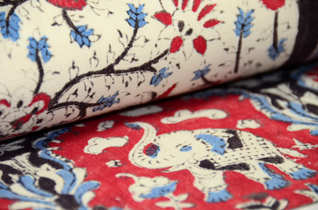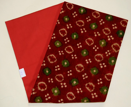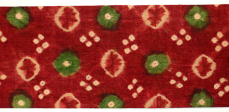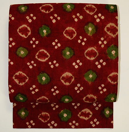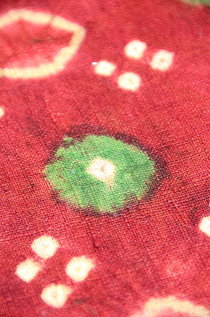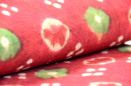 茜染の木綿地に、一面にぽんぽんと丸く絞られたインド更紗です。