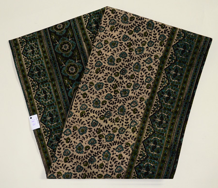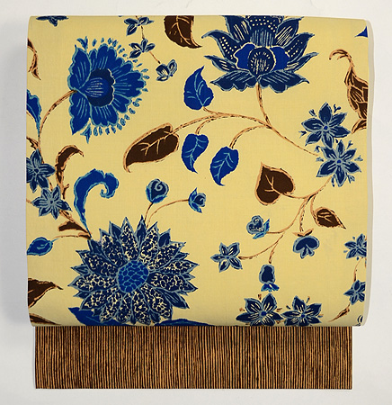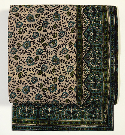 手紡ぎ、手織りの布「カディコットン」にブロックプリントが優しい帯です。