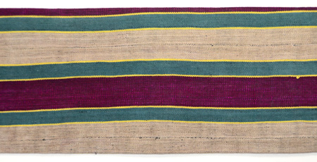 ナイジェリア、ヌペ族の「ヌペクロス」は、手紡ぎの木綿糸で織られたリズミカルな縞の帯です。