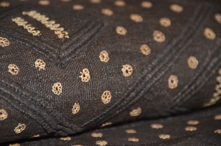 アフリカザイール(現コンゴ共和国)のクバ族伝統の布を付帯に仕立てました。