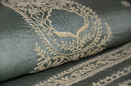 デザイナーが、デザインをおこし、カンタワークという伝統刺繍の手によって作られた布地です。