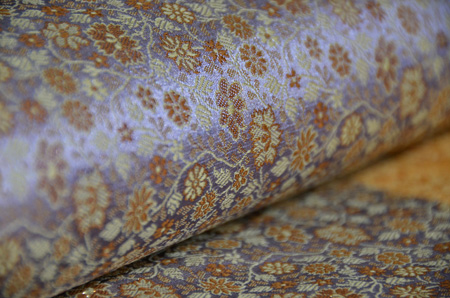 シルクの光沢、繊細な織り文様が美しいベナレスサリーの帯です。