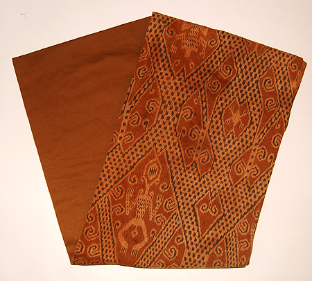 スマトラ島ラスムのバティックで、かつては門外不出とされた茜染めの技法を用いて作られたものです。