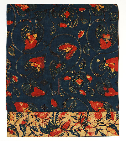 ソガ、茜、藍と色を重ねていく行程が熟練の技を要し、今でもバリなどでは高級なバティックのひとつとされています。