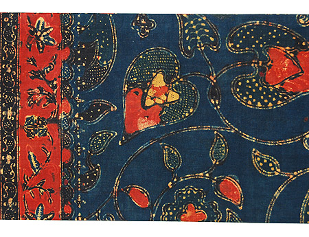 茜染めでペイズリーや花唐草など、サザン朝の影を残しています。