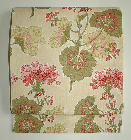 ベージュの色が複雑な柄をすっきりと見せ、シンプルなものを好む方にも挑戦して頂きたい帯です。