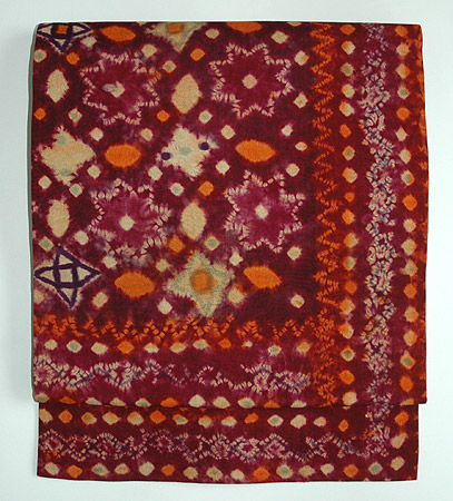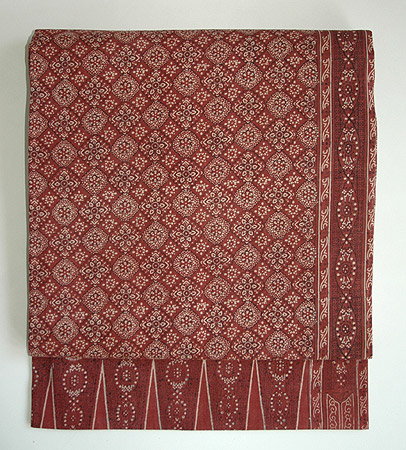時代を経た茜色がとても懐深く、紬に合わせて頂きたい帯です。