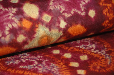 縫い締め絞りや巻き締め絞りと細かい模様が併用され、多色使いが特徴的です。