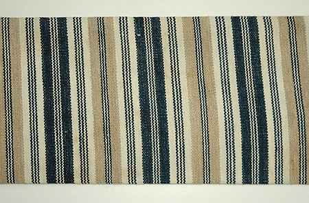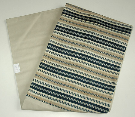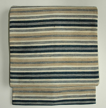 藍染めの木綿と茶綿を織り込んだショールを6通帯に仕立てました。