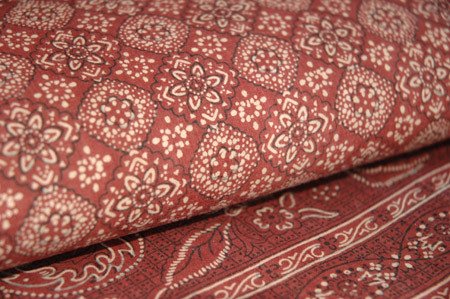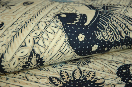 紋織と絣によるもので、三角形と小花文様はインドネシアの布によく見られます。