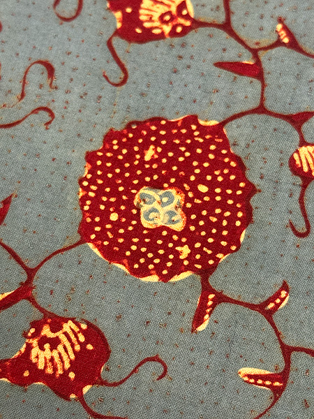 かわいいお花文と、赤茶の色が印象に残る更紗です。