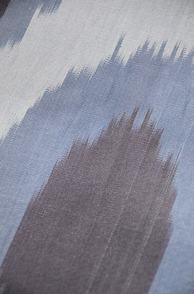 茶の色糸を伴う繊細な織りは、地上の花や、天空の星を象徴しているのでしょうか。