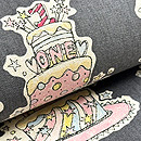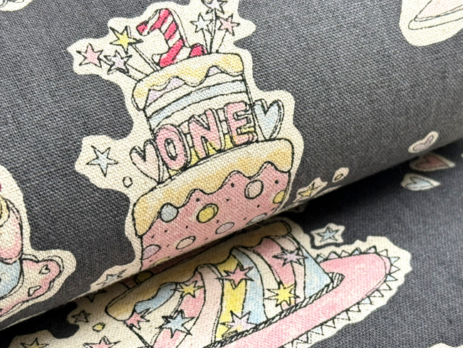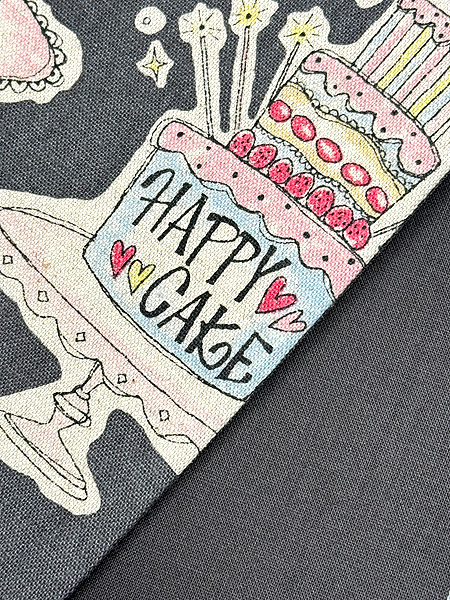 チャコールグレーにソフトピンクと水色という洗練された色味で、なんとおいしそうなケーキが並んでいます。