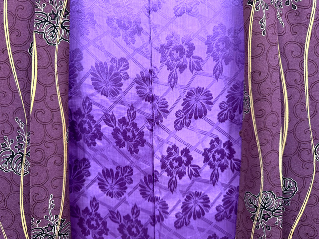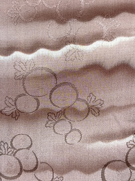 様々な文様が織り込まれた地紋も素晴らしく、色紙文、霞文、流水文様など、その一つひとつにさらに細かい文様が織り込まれています。