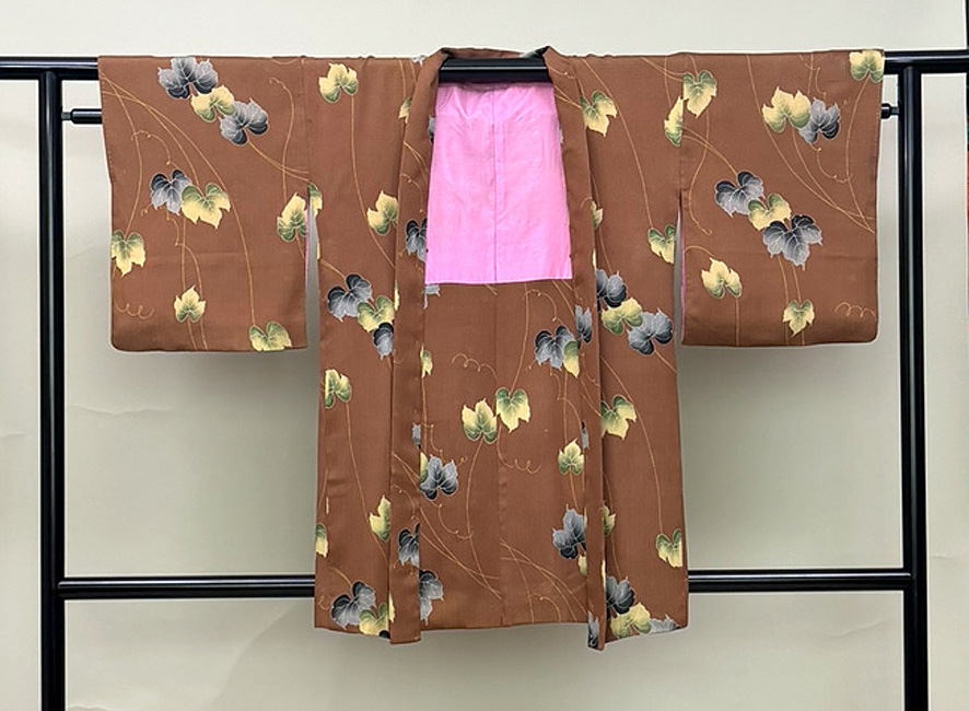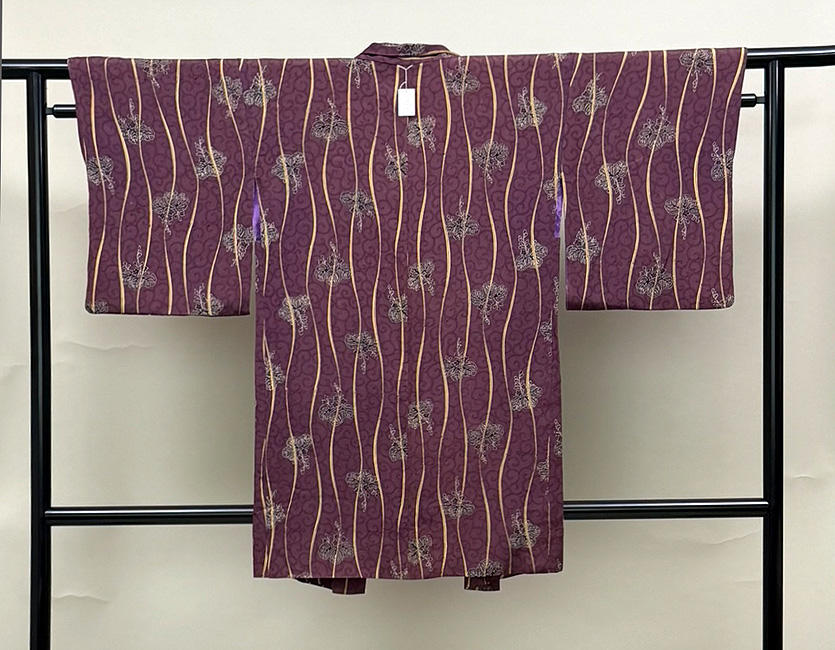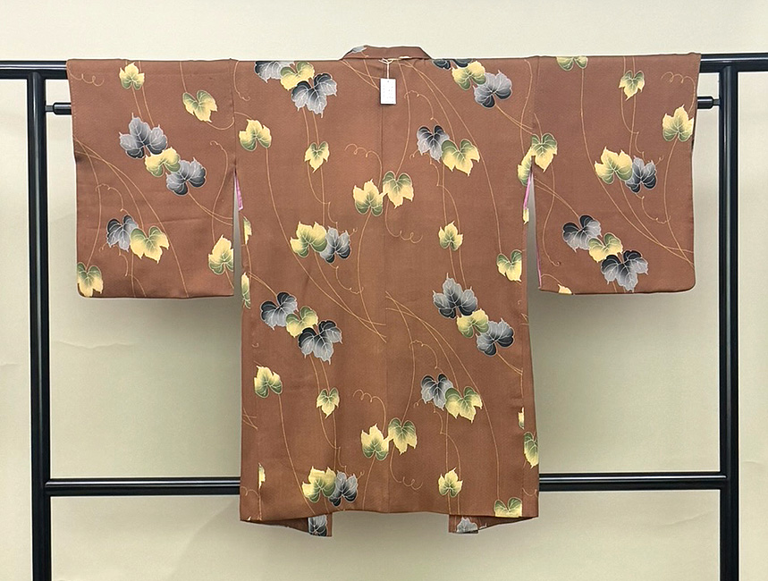 舞い散った桐の葉っぱに立涌が絡まった、深い秋に向かってのオシャレな羽織をオススメします。