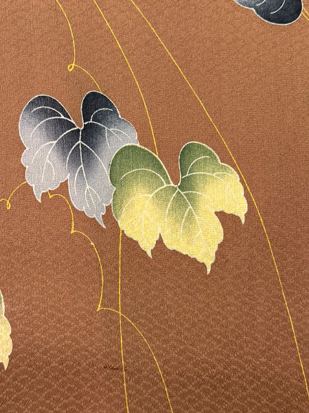 細かな青海波の地紋様が入った生地に、うっすら色づき始めた蔦の葉が流れるように描かれています。