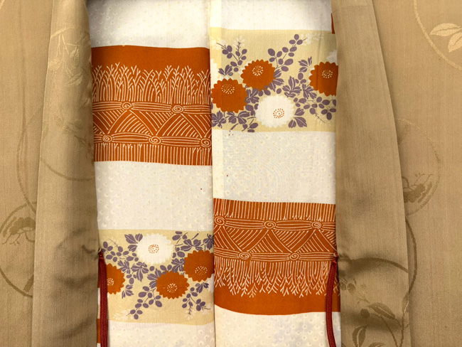 羽裏にも菊や稲穂、萩の柄があり、秋の装いにぴったりです。