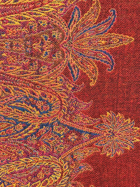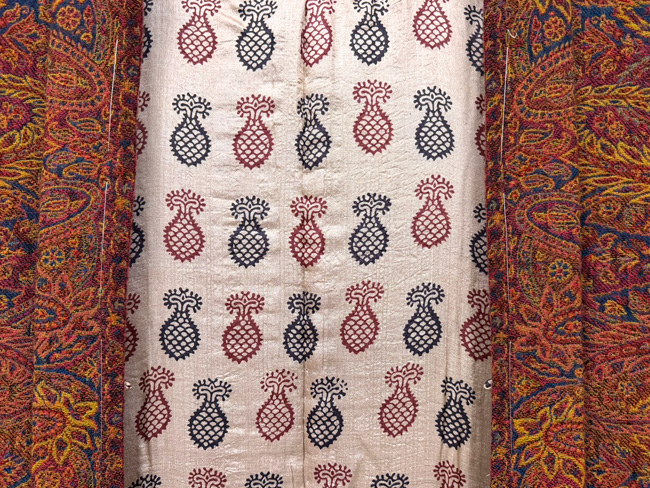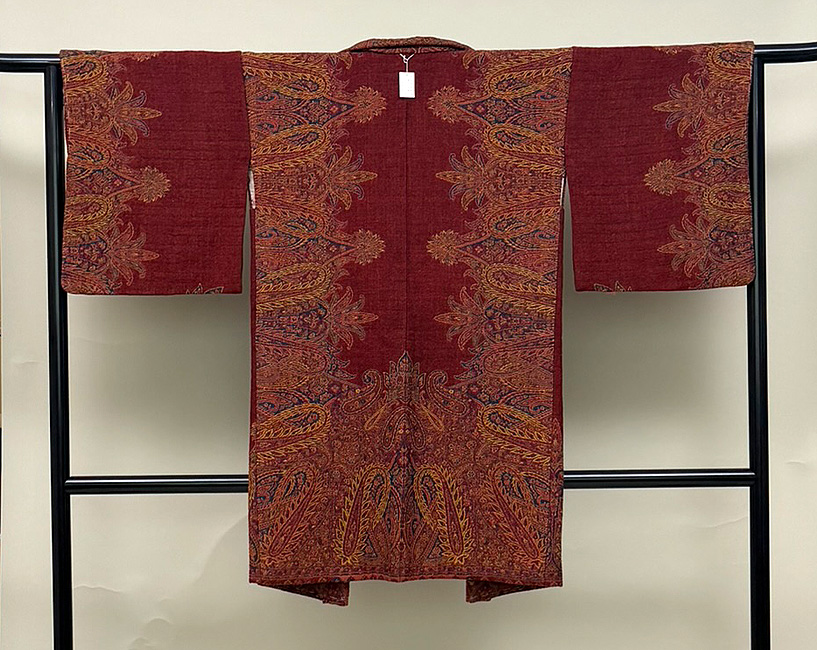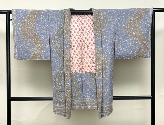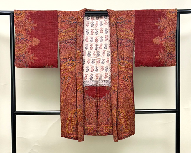 仕入れ旅行でインドから持ち帰ったジャマワ・カシミールのショールから羽織を仕立てました。