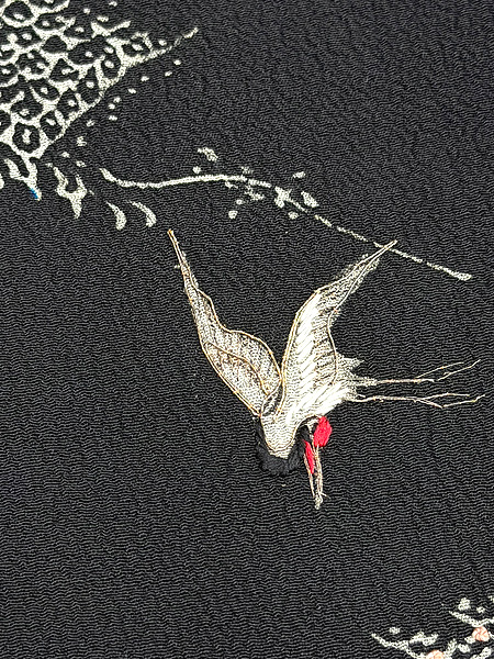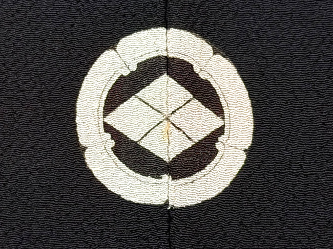 静寂の空気を震わせて、4拍子が響きわたる、まさにその時を表現した、3つ紋付縮緬地です。