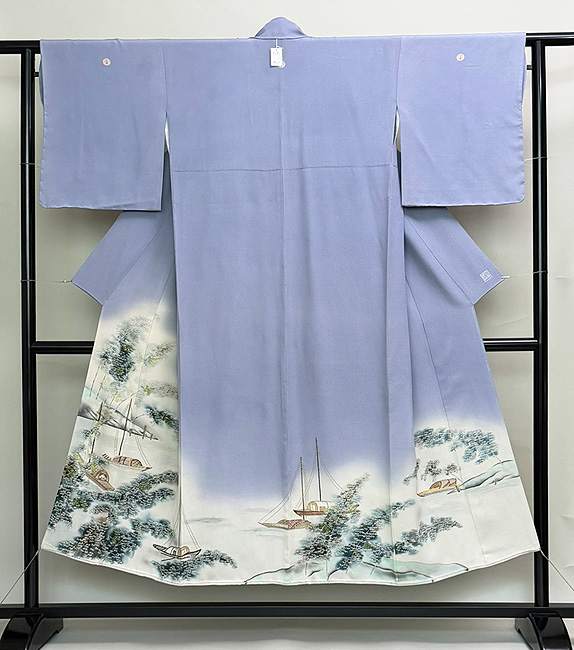 光沢のある錦紗の一越縮緬に初夏の水辺の風景を描いた付下。