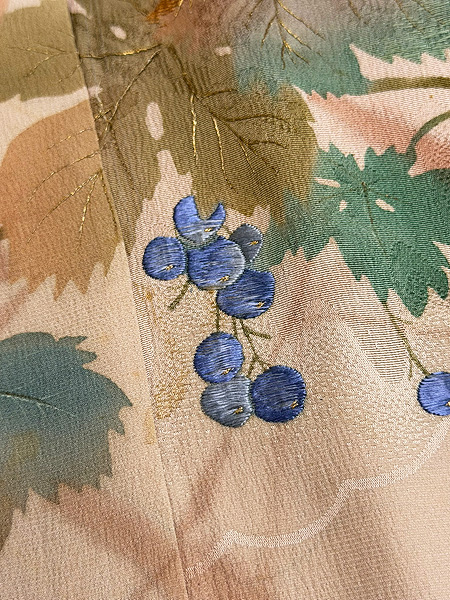 ぶどうの実と小菊の刺繍が穏やかな輝きを添えます。