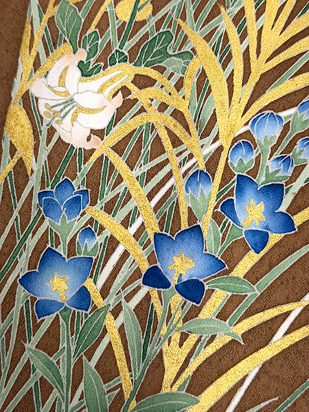 花と葉の随所に金銀の刺繍がしてあり、動くとかすかに光って上品です。