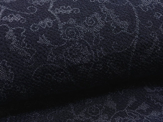 少し青みがかった濃いグレー色の鬼絞縮緬です。