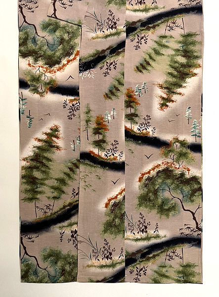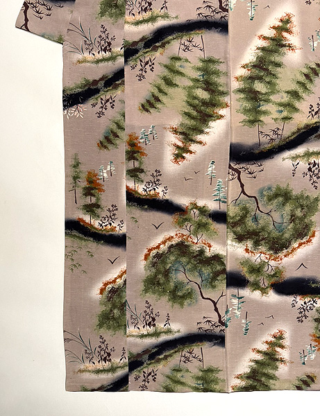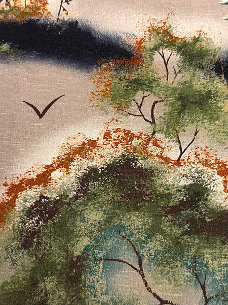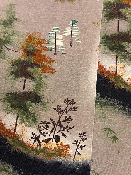 秋景色文様の小紋袷