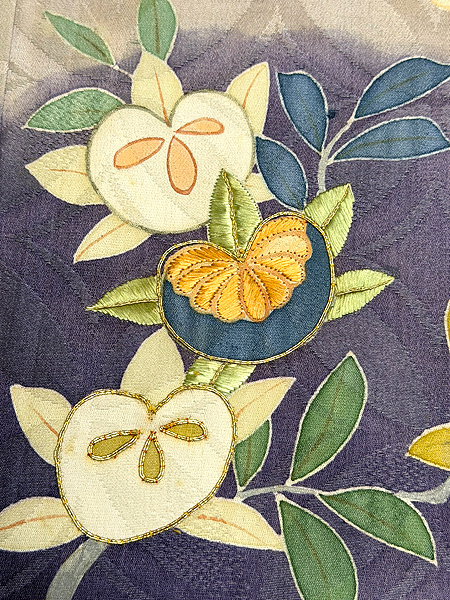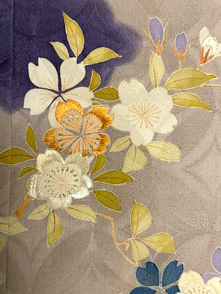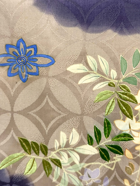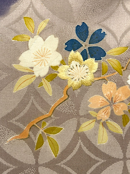 胸には桜、肩には青紅葉が流麗に枝を伸ばしています。