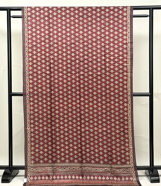 あずき色マンゴー柄のサリー