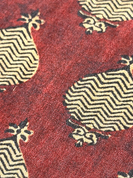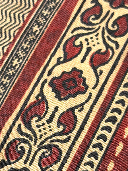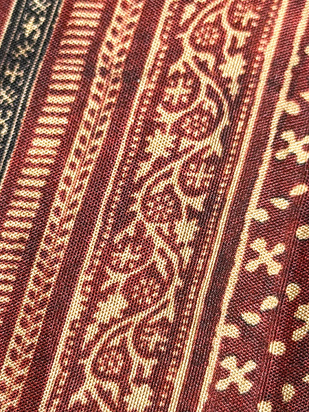 経年の中で、絞りのシボが程よく残って、斜線の暈しと大きな文様とに民藝の香りが偲ばれます。