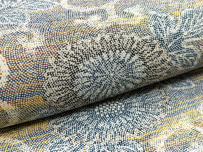 発色の美しさはもちろんのこと、節のある織地の風合いが独特の存在感を示します。
