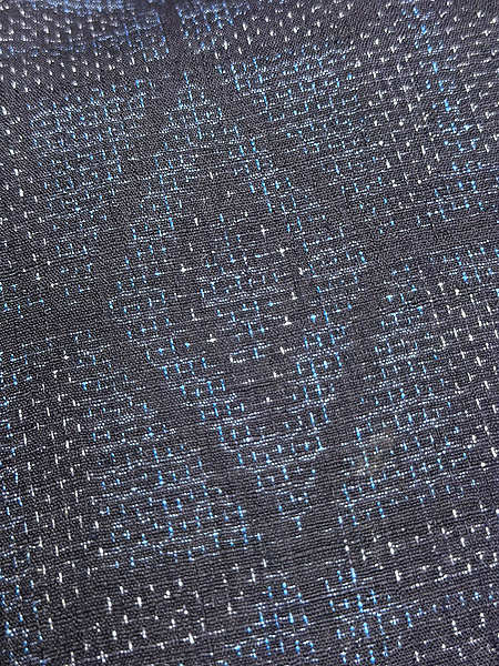 織り込まれた小さな絣は、よく見ると柄や色が微妙に違って、それが全体の大きな面に柔らかさをもたらすというおもしろい綿薩摩です。