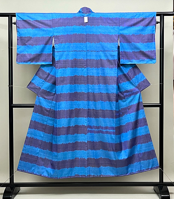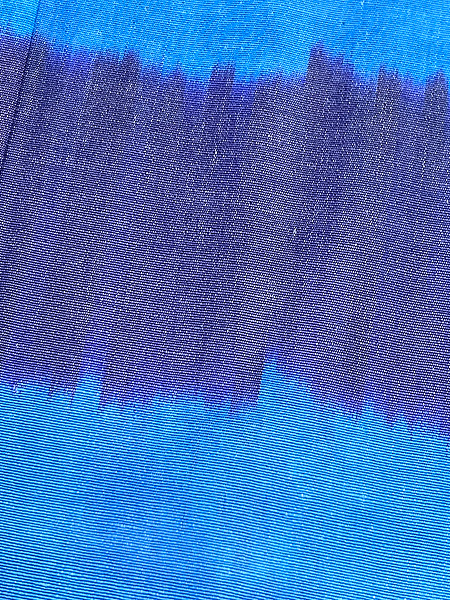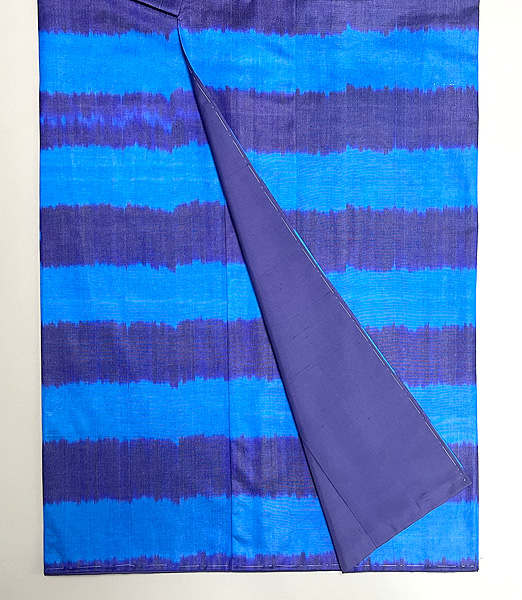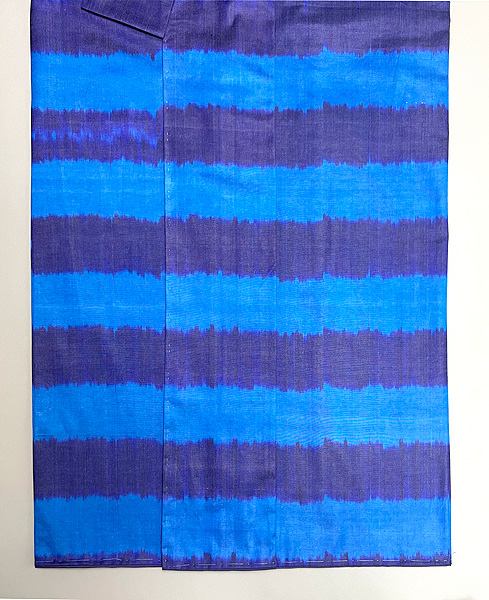 大きな刷毛目のような絣が縦に整然と並んで、その間に2列の縞があります。